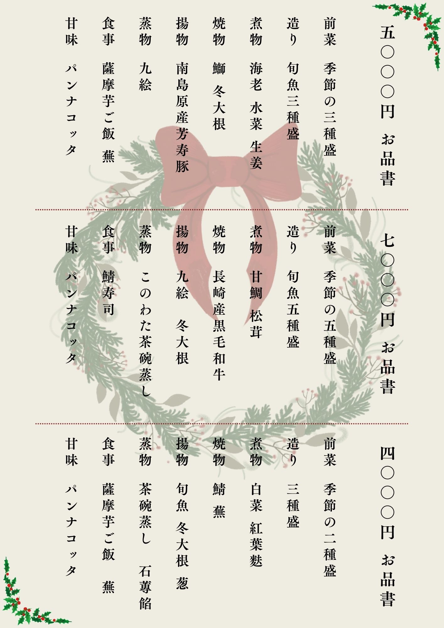 • お品書