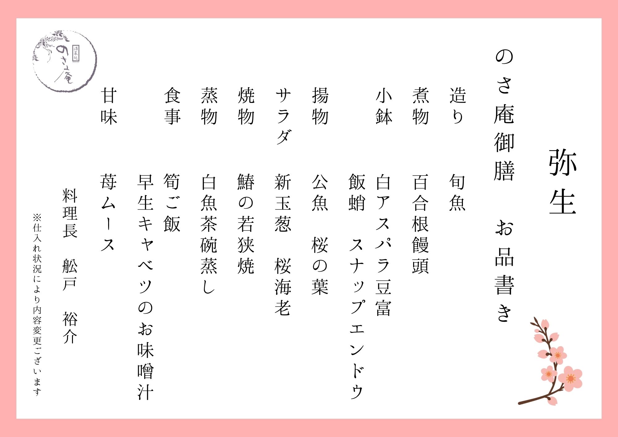 • お品書